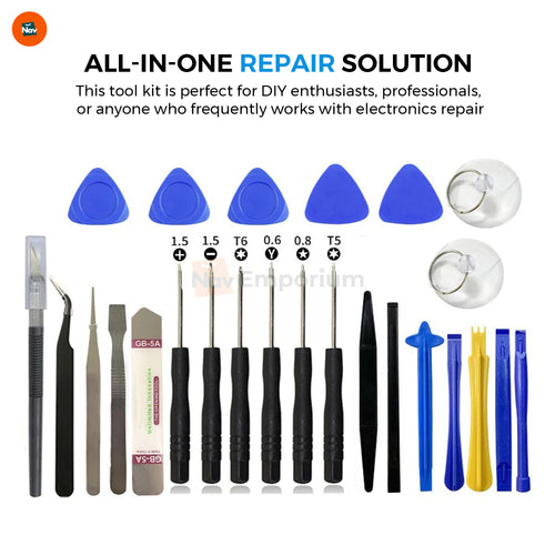 Verschwenden Sie mitten in einer Reparatur Zeit mit der Suche nach dem perfekten Werkzeug ? Diese Frustration kann zu Verzögerungen, Verwirrung und sogar unsachgemäßen Reparaturen führen , die oft weitere Probleme verursachen . Was Sie sich wünschen, ist ein umfassendes Werkzeugset, das Ihnen alle benötigten Werkzeuge an einem Ort bietet. Das ProTech Tool Kit bietet eine Komplettlösung mit sieben Hebelwerkzeugen , zwei Stahlhebelwerkzeugen und einem Präzisionsschraubendreher-Set , sodass Sie für jede Reparaturaufgabe das richtige Werkzeug haben.