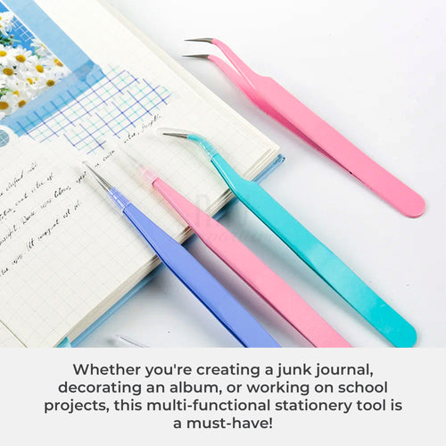 Craft Ease Precision Tweezers perfect for stickers & washi tape with fine-tip precision, ergonomic grip, durable design, and a cute, stylish look for all your crafting needs.