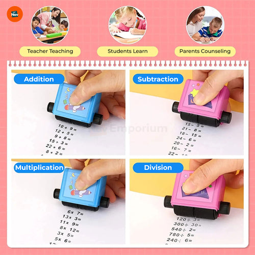 Perfect for kids ages 3-12, these interactive stamps help children master addition, subtraction, multiplication, and division with fun, adjustable designs and reusable ink.